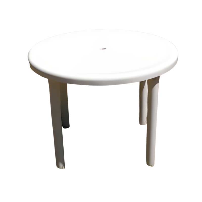Our white outdoor round tables for hire have a radius of 93cm. They comfortably seat four people when combined with the bistro chair.